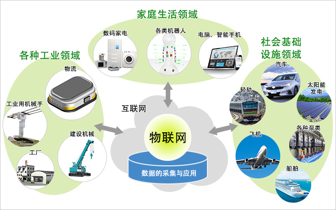 以往,連接至互聯網的電腦和手寫面板等都是以人輸入的裝置為主流。但是,隨著科技的進步,微處理器和通信模塊的低成本化也有所發展,迄今為止沒有與互聯網相連接的“物”也連上了網絡,并通過網絡互通信息。這種情形下的“物”,例如,工廠內的制造設備、家用電器、汽車和街角的自動售賣機,它們將信息上傳到網絡,無需通過人手,就能以機器對機器(machine to machine)的方式自動報告運轉情況,啟動報警功能,或是發出信號要求補充材料或是下訂單等。